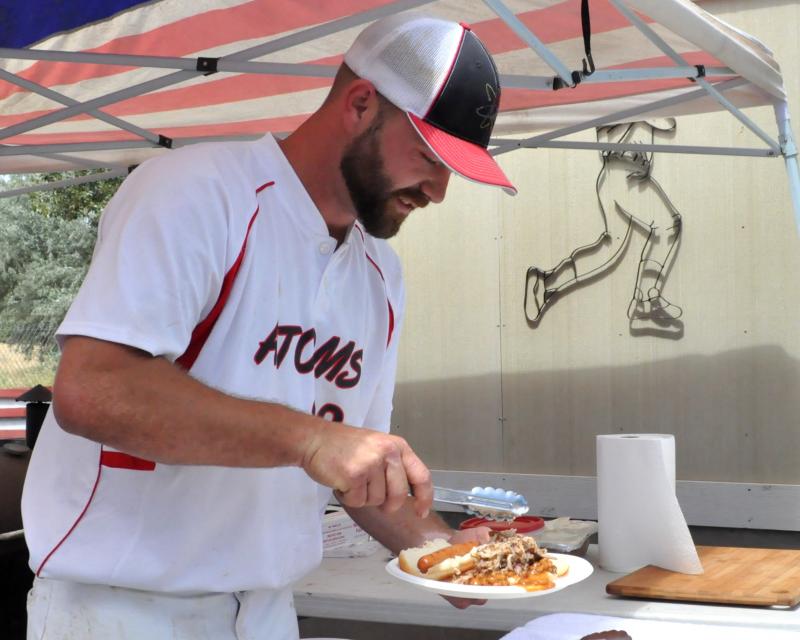 Saturday morning was a great new day and the Flyers were ready to shake off Friday's performance and play some ball. Steve Willett, owner of Autohaus and sponsor of the day, brought the BBQ train to the park filled with enough pulled pork sandwiches, hot dogs, homemade beans, cole slaw, lemonade, and watermelon for 100 people making it the biggest event of the season.